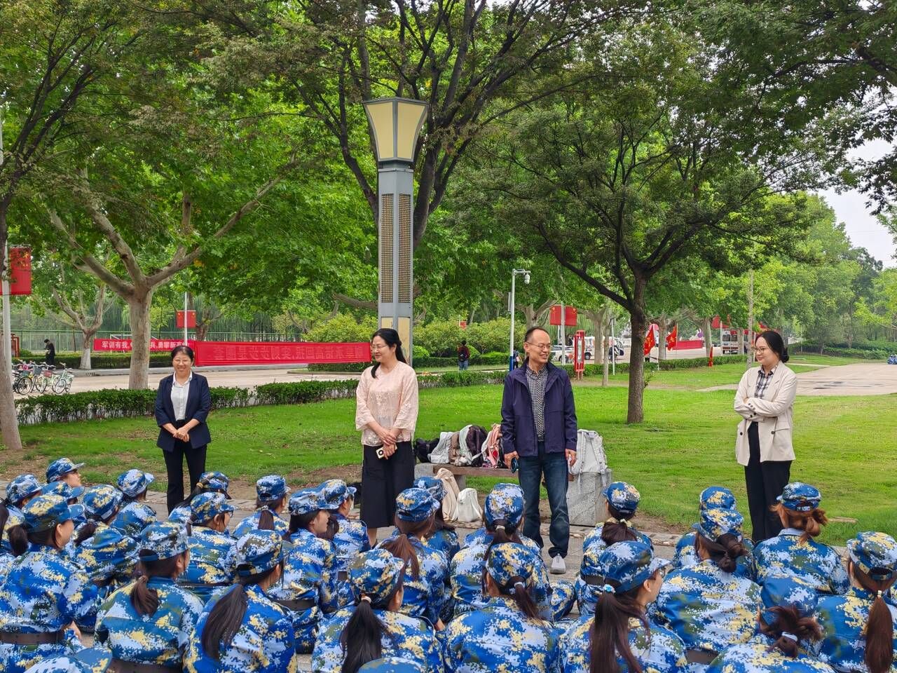 在训练场上,老师们驻足观察新生们的队列训练,认真查看同学们的动作规范性和精神状态,随后走到学生中间,亲切地与学生们交流,关心他们的身体状态,询问同学们的训练感受和身体状况,特别叮嘱同学们要在刻苦训练的同时注意劳逸结合,科学安排训练时间,保持良好的状态。