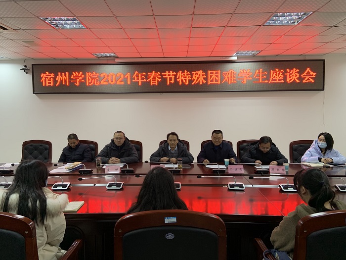 值春节来临之际,为深入了解家庭困难学生的学习生活情况,落实精准资助政策,2021年1月12日中午13:00,我院在逸夫楼第一会议室召开了2021年春节特别困难学生座谈会。后勤管理处处长周家华、团委书记凌峰、阡陌物业董事长田振雨、学生处相关老师及部分家庭经济特困学生参加了座谈会。会议由学生处处长孙增响主持。