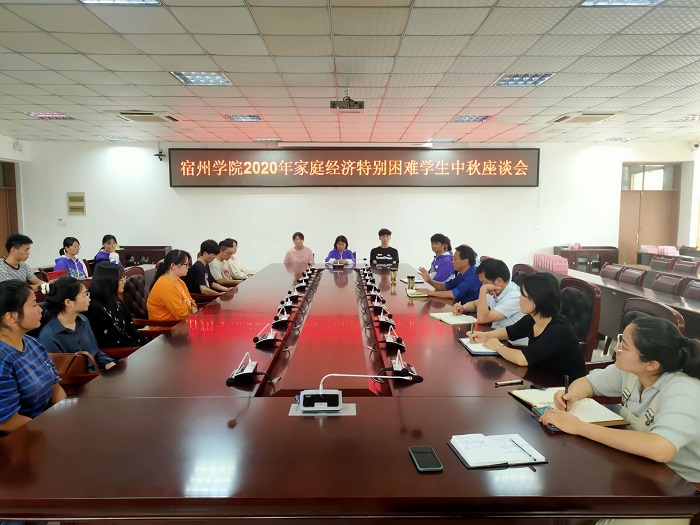 金秋送爽,中秋月圆。值中秋来临之际,为深入推进我校资助工作开展,让远离家乡的学子在节日里感受到学校的关怀与温暖,9月29日中午13:00,我校在逸夫楼第一会议室召开家庭经济特别困难学生中秋座谈会,校招就处处长杨刚、校团委副书记凌峰、学生处相关老师及部分家庭经济特困学生参加了座谈会,会议由学生处处长孙增响主持。