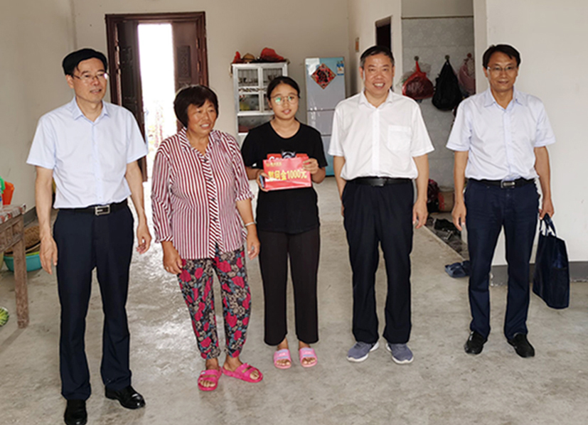 今年是决战脱贫攻坚的收官之年,为深入学习贯彻习近平新时代中国特色社会主义思想、党的十九大和十九届四中全会精神,落实精准扶贫政策,全面助力决战脱贫攻坚,根据省学生资助中心工作部署,2020年7月14日,校党委书记汪刘送、党委副书记蔡之让在学生处处长孙增响陪同下赴埇桥区芦岭镇丁桥村、泗县墩集镇霸王村走访慰问建档立卡贫困学生。