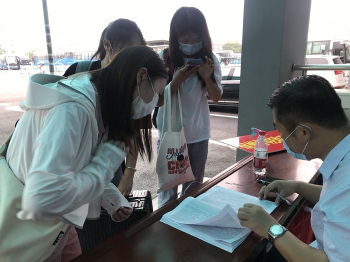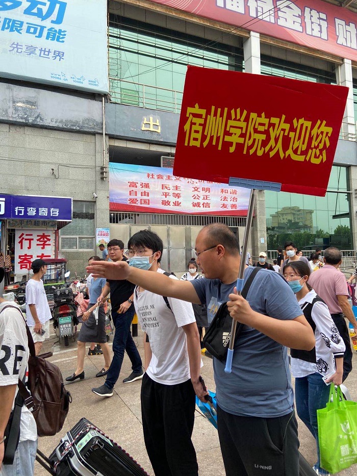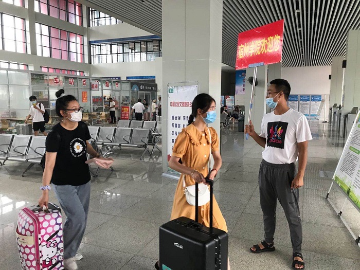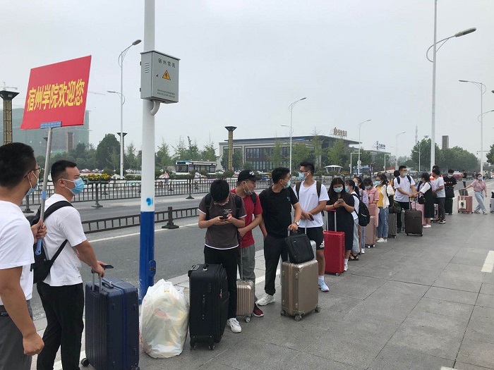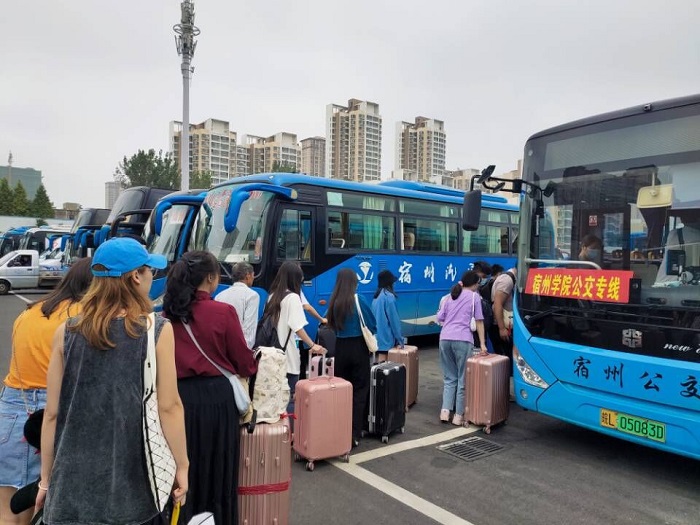 为确保学生顺利返校,学校联合宿州市公交公司在火车站、高铁站,快客站设置“宿州学院公交专线”,并安排接待点,“点对点”接送返校学生直达学校。各接待点辅导员老师全程引导学生完成测温、核验信息、登车等各个环节,实现温暖、快速、稳妥入校。走出出站口的那一刻,首先映入眼帘的便是“宿州学院”醒目的字体,老师们忙碌的身影忙碌在车站的各个角落,不辞辛苦,翘首以盼,只为为你拂去风尘仆仆,为你驱除舟车劳顿。