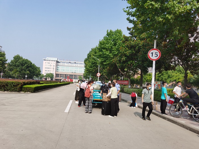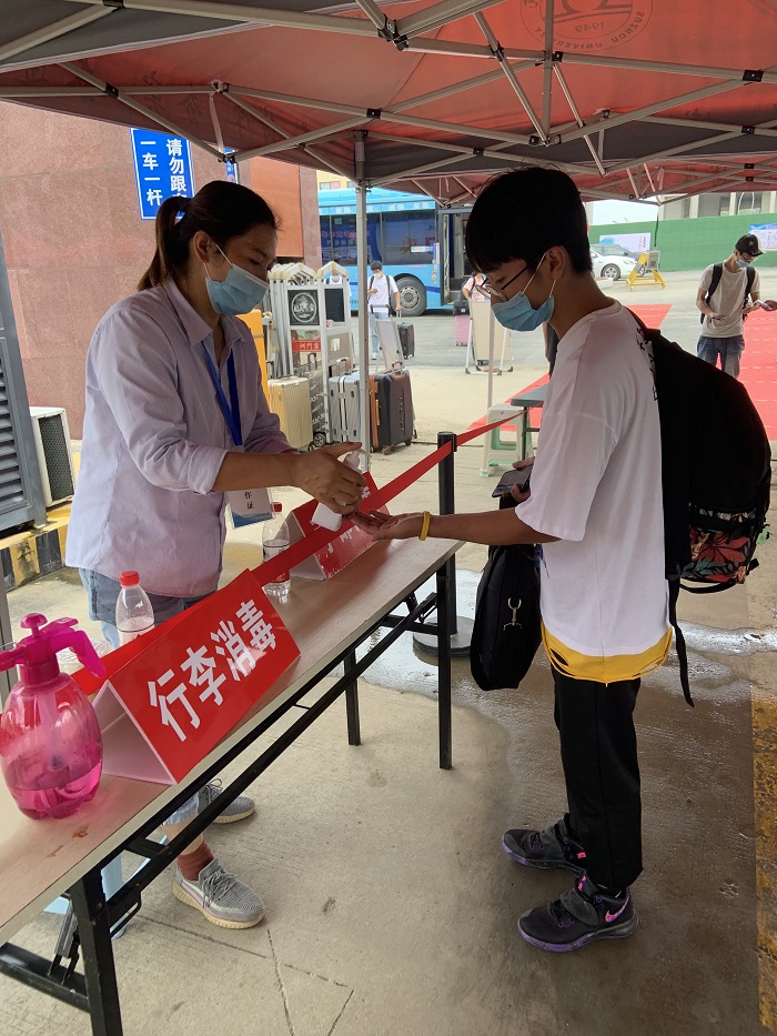 在学校南门,学校安排了交通车辆帮助学生运送行李至各个学生宿舍,为学生返校后提供便利。回到阔别已久的宿舍楼前,一切似乎和从前一样却又大不相同,做好每一步的消毒工作后,宿舍楼更加整洁明亮了。现阶段食堂统一采用的是分餐制的供应模式,建议无课或早下课的学生,提早前往食堂打饭,错峰用餐,避免扎堆聚集。为解决错时、错峰洗浴问题,浴池对原有洗浴系统进行了升级、改造,增加了预约功能,学生在手机上可以直接进行预约。