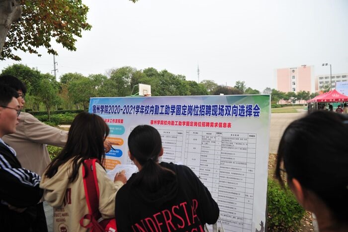 据不完全统计,本次双选会共吸引全校1000多名同学参与,活动受到了广大同学和校内用工单位的一致好评,取得了圆满成功。下一步,学生处将组织用工单位与学生签订《宿州学院校内勤工助学协议书》,进一步规范校内勤工助学管理,推动我校学生勤工助学工作健康有序开展。