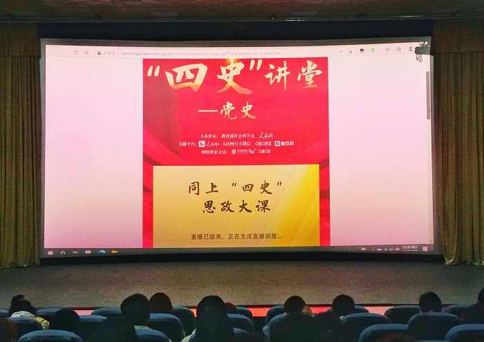 为深入贯彻落实习近平总书记关于深化思想政治理论课改革创新和“大思政课”的重大指示批示精神,全面落实习近平总书记在党史学习教育动员大会上的重要讲话精神,4月24日下午2:00,我院组织全院学生以集体收看和个人收看相结合的形式认真观看“四史”讲堂第一堂课——“同上党史思政大课”。