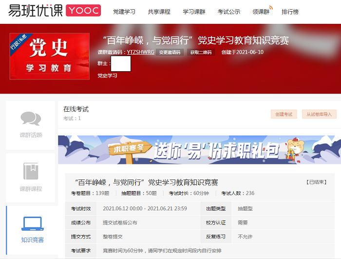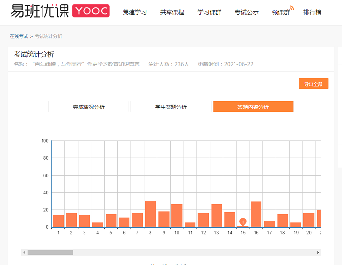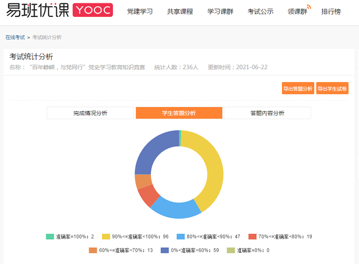 为庆祝建党一百周年,加强党史学习教育,我院于6月12日至6月21日利用易班优课平台在全院范围开展“百年峥嵘,与党同行”党史学习教育知识竞赛活动。