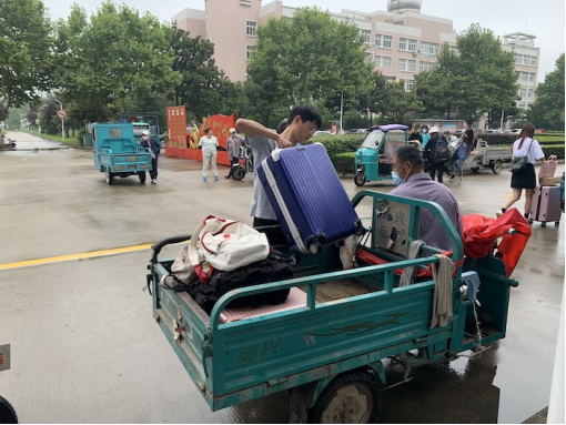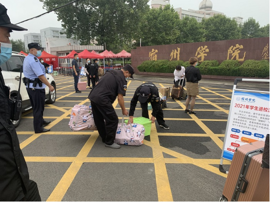 学校南门设立返校专用通道,同学们按照要求排队依次通过。保卫处工作人员在校门口维持交通安全秩序,检查健康码、行程码、疫苗接种情况、测量体温,一旦出现异常,立即送往隔离点进行复检。后勤与基建处工作人员对学生手足和行李进行消杀。辅导员把好最后一道关,核验学生身份,核对48小时核酸阴性检测报告,通过层层审核,学生方可进入校园。后勤与基建处安排了爱心三轮车,为返校学生运送行李。在体育楼一楼设立核酸检测站。宿州市红十字救援队义务来学院进行全面消杀。