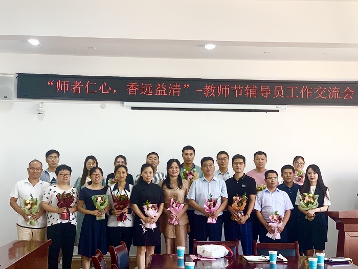 9月10日上午,学工部在文学与传媒学院会议室举办“学党史办实事”—“师者仁心,香远益清”教师节辅导员沙龙,文学与传媒学院党委书记杨文艺,文学与传媒学院党委副书记刘影,管理学院党委副书记张增林,外国语学院党委副书记张亚峰,音乐学院党委副书记李小娜,化学化工学院党委副书记刘茜,学工部副部长贾学彬、12名辅导员代表及学工部工作人员参加了会议,会议由学工部部长李月云主持。