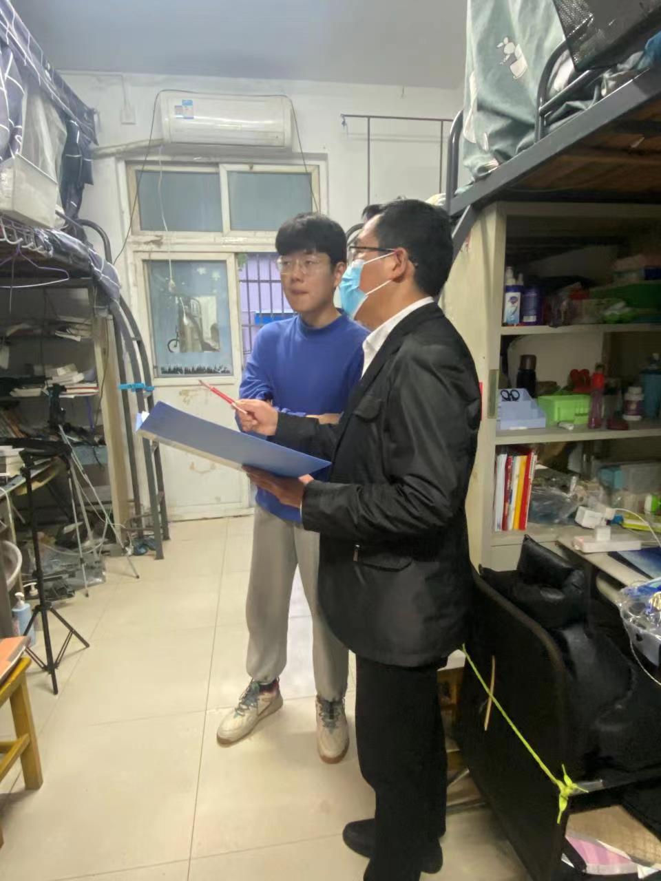 商学院党委副书记周亚在走访10号公寓楼时,每到一间宿舍,就学习生活、防疫安全、寝室卫生等问题与同学们进行交流,提醒同学们要养成良好的生活和作息习惯,注意开窗通风。并认真查看储物柜、桌子和衣物等物品的摆放情况。询问被子多久洗一次,窗户每天通风多久,对于宿舍卫生的管理和检查有什么好的建议。同学们对于此次抽查活动表示很认同,也觉得很有必要,同时对于寝室内的网线布置、公共洗漱区域噪声太大等问题提出建议。