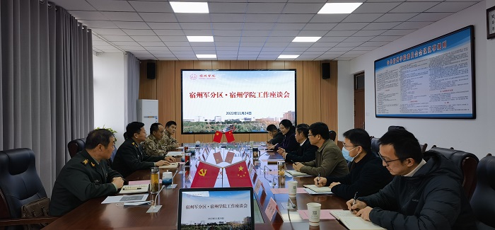 汪刘送介绍了我院十四五发展规划及申报硕士点立项建设工作的进展情况,并对宿州军分区和埇桥区人武部对我院军训、征兵工作的指导支持表示感谢。