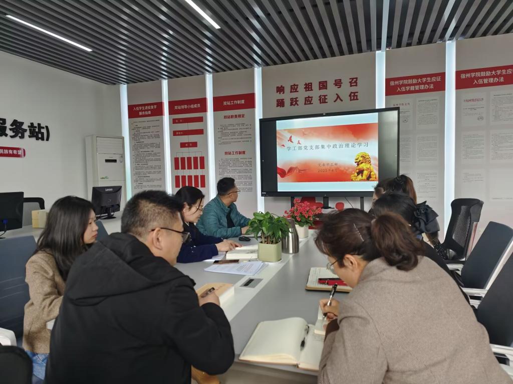 4月24日上午,党委学工部在逸夫楼B楼“征兵工作站和兵役服务工作站”召开4月份集中理论学习暨意识形态工作会议。会议由党支部书记李月云主持,学工部全体人员参会。