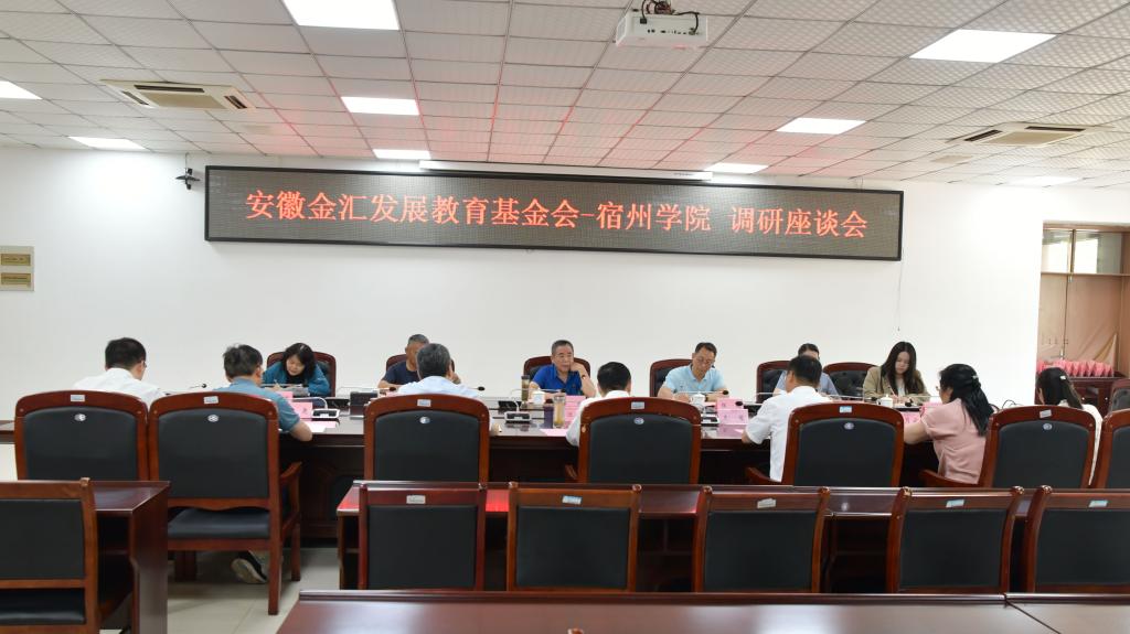 汪刘送指出,宿州学院地处皖北,大部分学生来自农村,他们学业职业发展意识强。在开展学习贯彻习近平新时代中国特色社会主义思想主题教育之际,金汇发展教育基金会和中国人民银行宿州市中心支行领导心系我校学子,专程来我校调研,是对我校的支持,是对学生的关心,对此表示十分的感谢。同时,要求学工部等相关部门做好下一步的对接和申请工作。