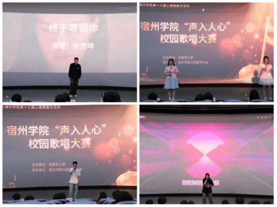 学校党委高度重视学生心理健康教育工作,在5月5日下发了《关于举办宿州学院第十九届心理健康月活动的通知》。活动月期间,邀请校外专家为师生开展心理健康专题讲座2场;开展“童话 沙盘游戏疗法 绘画疗法 梦工作——基于分析心理学的视角,解读人的心理成长”讲座3场;萨提亚模式在婚姻家庭生活中的运用团体辅导10期;开展心理知识竞赛、创意手工作品比赛、心理素质拓展活动等活动;面向120多名心理委员开展线上专题培训。各学院积极响应,承办和组织特色活动10余场。校院各级各类心理健康活动参与学生4000余人次,发放心理健康宣传材料3000余份。