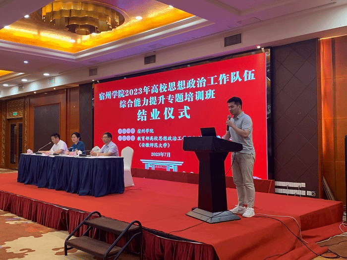 7月3日中午,宿州学院2023年高校思想政治工作队伍综合能力提升专题培训结业仪式如期举行,仪式由安徽师范大学马克思主义学院副院长余本玉主持。