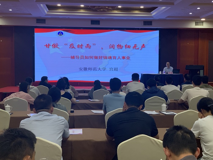 为学习贯彻习近平新时代中国特色社会主义思想,实施时代新人铸魂育人工程,提升我校辅导员整体育人能力和水平,推进辅导员队伍建设高质量发展,我校于6月30日联合教育部高校思想政治工作队伍培训研修中心(安徽师范大学)在安徽师范大学辅导员培训基地举办2023年高校思想政治工作队伍综合能力提升专题培训班,60余名辅导员及学工部工作人员参加培训。