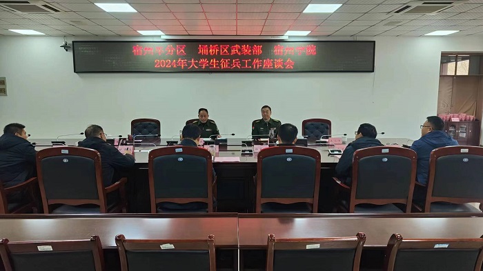 12月19日上午,宿州军分区动员处处长赵金龙、埇桥区武装部部长武建等一行4人来我开展2024年大学生征兵工作调研,调研座谈会在逸夫楼第一会议室举行。院党委副书记王俊出席会议,院武装部、学工部负责同志,美术与设计学院、管理学院党委副书记等相关人员参加座谈,会议由院党委副书记王俊主持。
