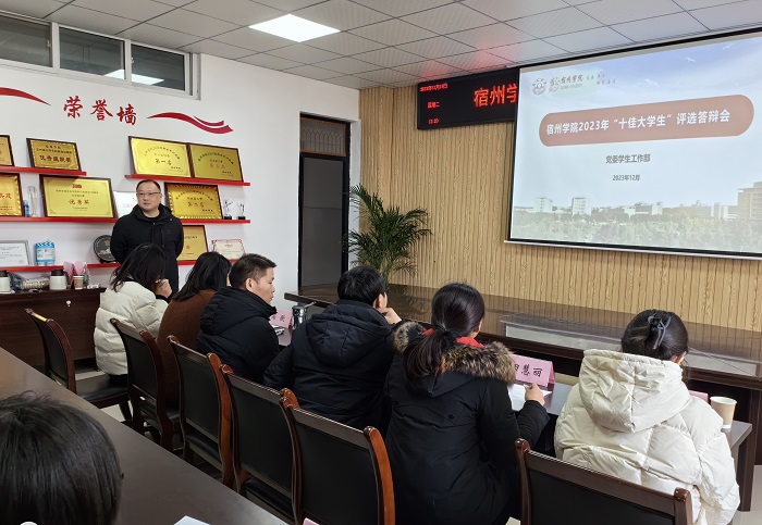为全面落实立德树人根本任务,选树优秀学生典型,发挥榜样示范作用,引领学生德智体美劳全面发展,12月19日下午,我校在逸夫楼A318会议室举办了2023年“十佳大学生”评选现场答辩会。