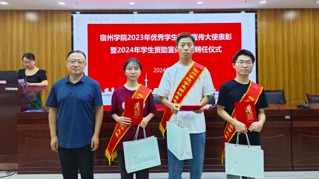 周宇宣布2023年度优秀学生资助宣传大使评选结果及2024年聘任名单,甘守飞分别为优秀宣传大使颁发荣誉证书,为30名新聘任的资助宣传大使颁发聘书。