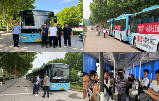 7月7日清晨6点,12辆干净整洁的公交车驶入学校,整齐地停在二冬大道两侧“待命”,负责将学生安全转运至车站。前往宿州东站(高铁站)、宿州火车站和快客站的同学,提着行李有序地排队上车。