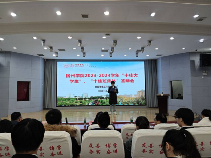 为全面落实立德树人根本任务,选树优秀典型,发挥榜样示范作用,引领学生德智体美劳全面发展,11月28日下午,我校在工科楼就业招聘大厅举行宿州学院2023-2024学年“十佳大学生”、“十佳班集体”答辩评审会。