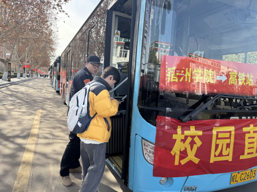 在寒假来临之际,为方便学生平安顺利离校,1月9日-10日,宿州学院联合宿州市公交公司开展了“一站式校园直通车”活动,为学生提供安全、舒适、方便、优质的寒假出行服务。