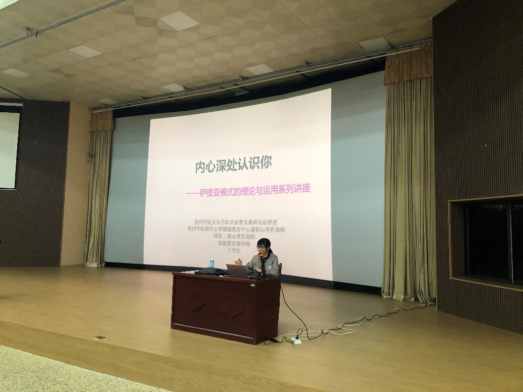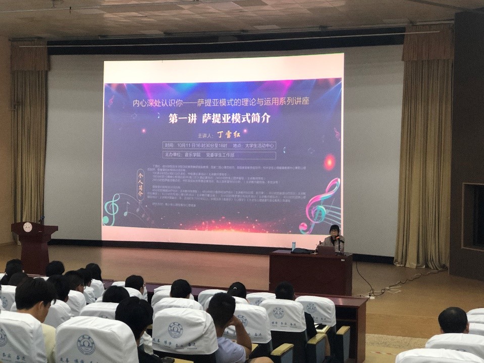 为贯彻落实新时代学生心理健康工作,充分发挥心理育人功能。10月11日,我校在大学生活动中心举行“内心深处认识你——萨提亚模式的理论与运用系列讲座”的开班仪式。音乐学院副院长钦媛、国家二级心理咨询师丁雪红、师生心理健康教育与咨询中心主任詹春燕等参加了开班仪式。