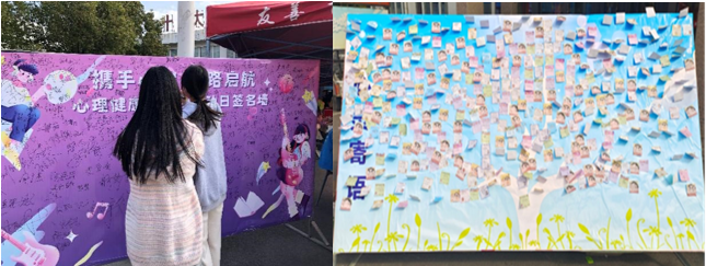 本次活动以“携手心扉 心路启航”为主题,策划了“现场签名墙活动”、“爱的抱抱温暖校园行动”、“幸运抽签有奖问答”、“心灵寄语”、“情绪交换盒子”、“心语邮递 共筑关爱桥”、“心灵手巧 黏土治愈”等特色活动。