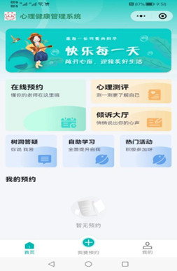 1、学生扫码或登录微信小程序“宿州学院心灵有约”