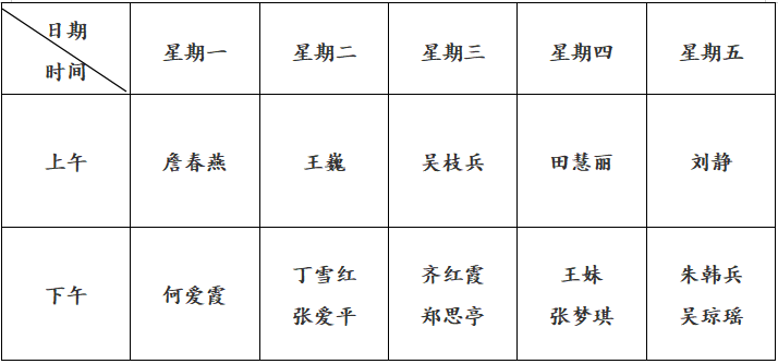 为了满足全校师生心理咨询需求,现将2023年春季学期心理健康教育中心值班安排如下: