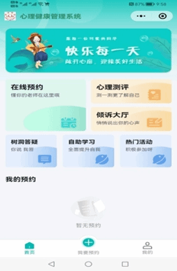 1、学生扫码或登录微信小程序“宿州学院心灵有约”