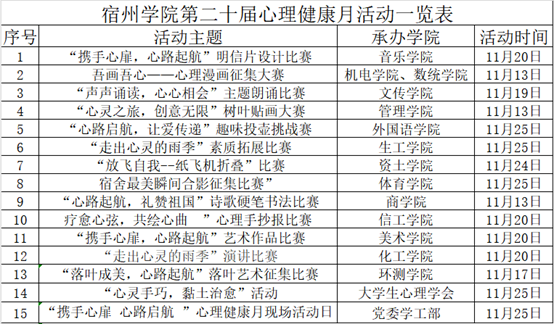 关于举办宿州学院第二十届心理健康月活动的通知