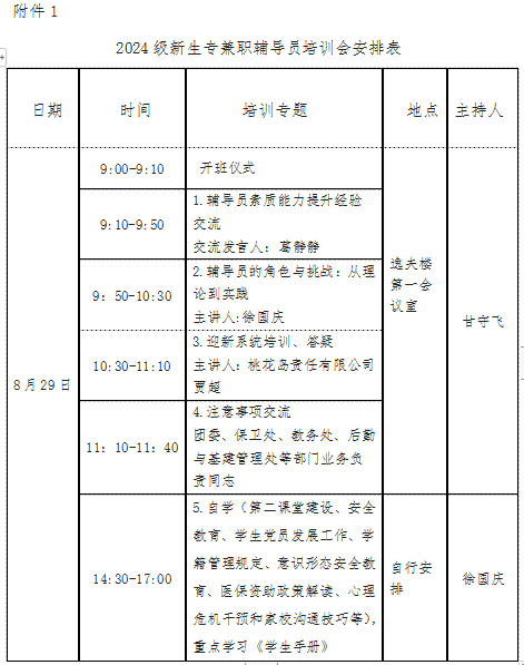 为全面做好2024年迎新、新生入学教育和日常管理服务等工作,进一步提升新生辅导员“立德树人”的政治能力和职业素质,经研究,现决定举办2024级新生专兼职辅导员专题培训会,具体通知如下。