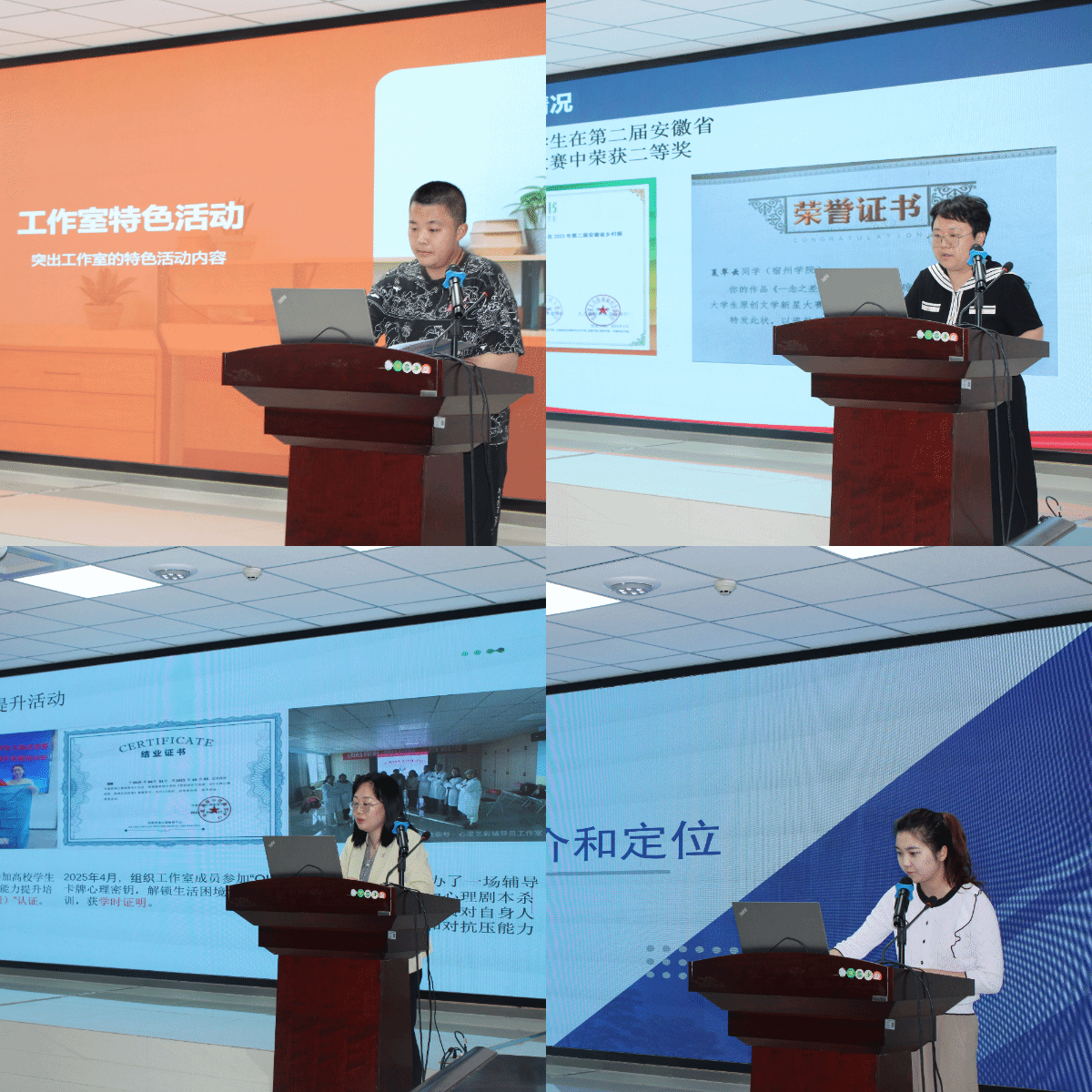 汇报环节中,各工作室负责人紧扣核心,从建设主题、功能定位出发,详细阐述建设内容、具体举措,展示已取得的建设成效,并分享特色创新成果。同时,也坦诚剖析存在的不足,结合实际提出未来规划,全面呈现工作室阶段性建设情况。
